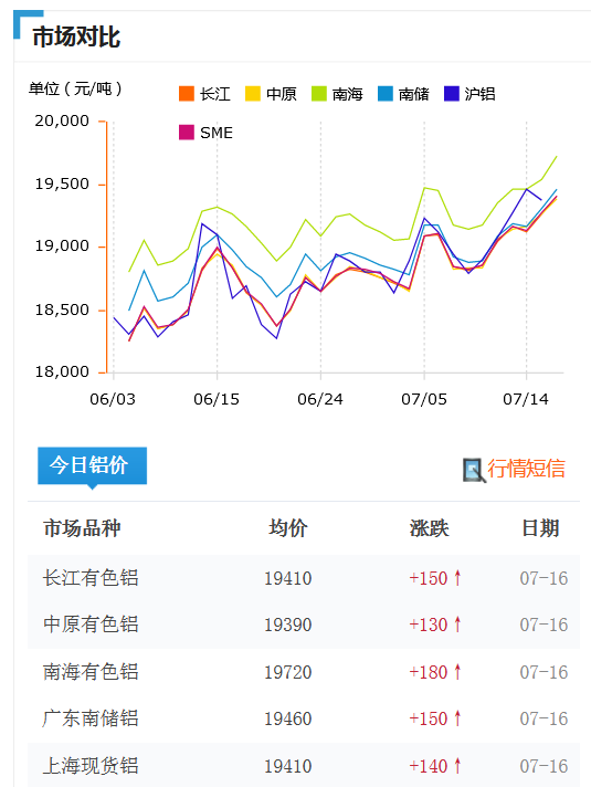 鋁錠價(jià)格7月16日今日鋁價(jià)